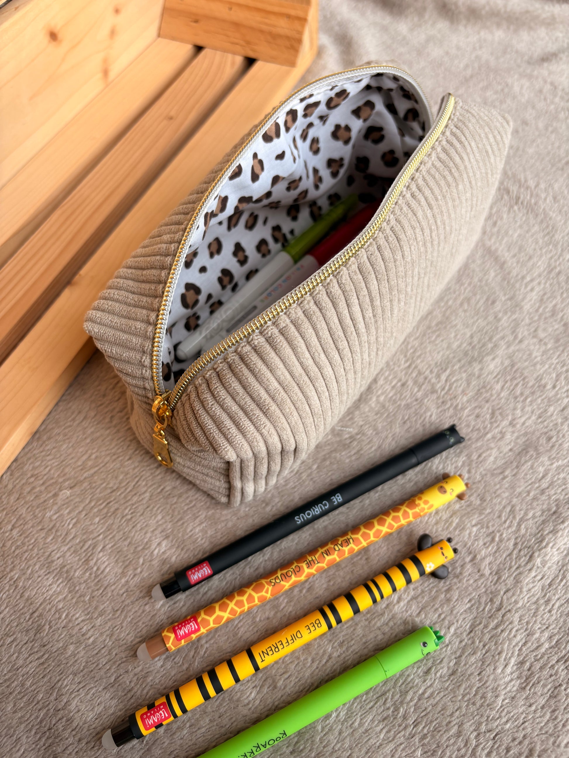 À la fois pratique et personnalisé, ce plumier est conçu pour accueillir vos essentiels d’écriture avec style. Que vous l’utilisiez pour vos stylos favoris, vos pinceaux, ou comme un bel objet de rangement sur votre bureau, il allie fonctionnalité et esthétique.